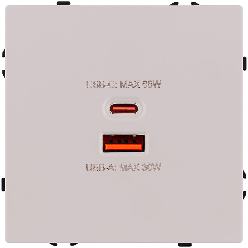 Розетка USB A+C 2.4А с электрической розеткой Eclipse, USB type-C 5V, USB type-A 5V, двойная
