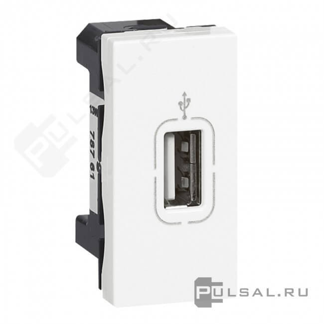 Зарядка USB type-A, 0, 75A Mosaic, DLP, DLP floor, DLP IP 44, DLP IP 40, USB type-A 5V, одинарная, цвет - белый