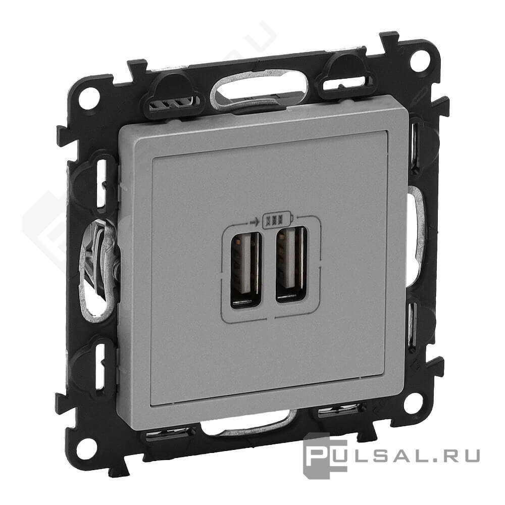 Розетка телефонная RJ11 Valena Life, двойная, цвет - алюминий