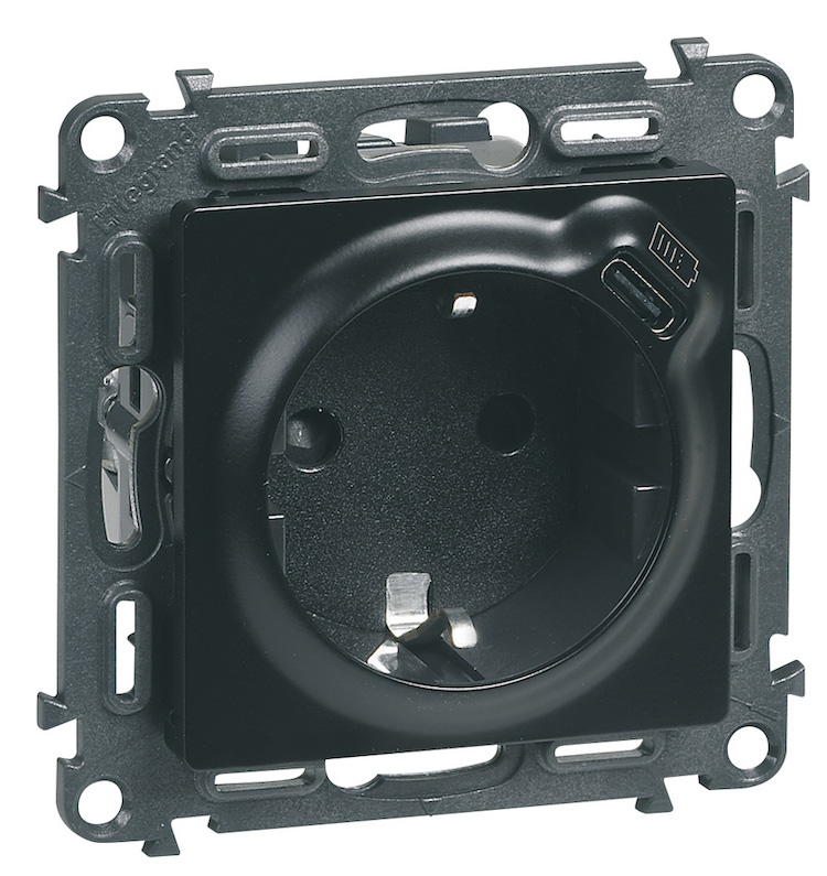 Valena Life, без шторок, с заземлением, одинарная, безвинтовые клеммы, цвет - матовый черный
