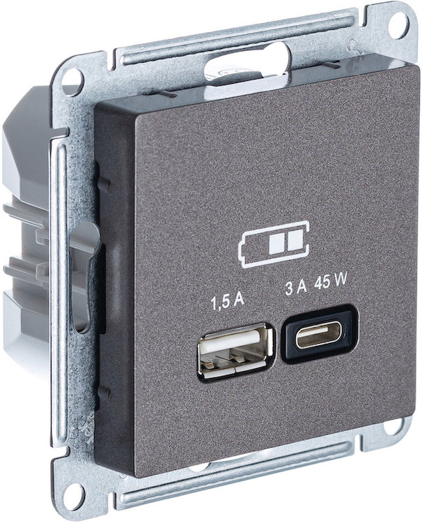 Розетка USB type-A+C 45 Вт с быстрой зарядкой Atlas Design Antique, AtlasDesign Air, Atlas Design, USB type-C 5V, USB type-A 5V, двойная, цвет - мокко