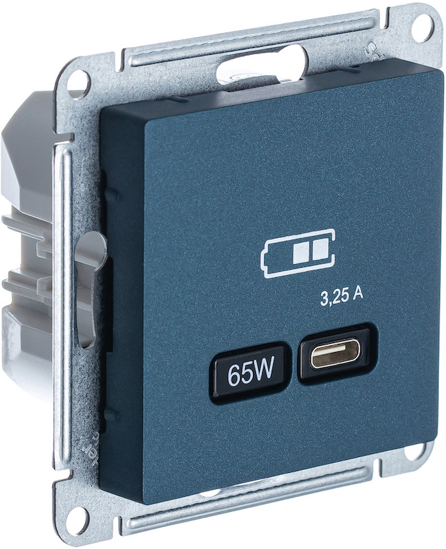Розетка USB type-C 65 Вт с быстрой зарядкой Atlas Design Antique, AtlasDesign Air, Atlas Design, USB type-C 5V, двойная, цвет - изумруд