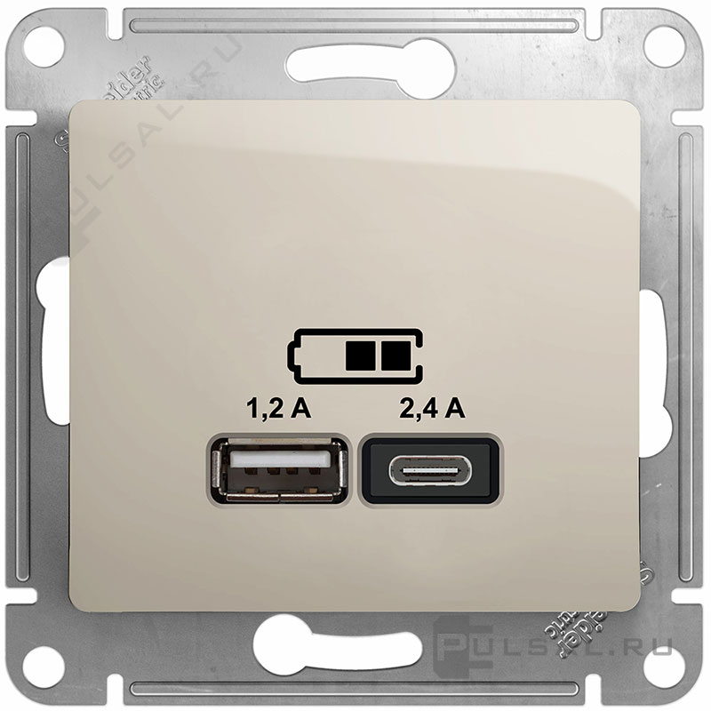 Розетка с рамкой Glossa, без шторок, с заземлением, одинарная, винтовые клеммы, цвет - молочный