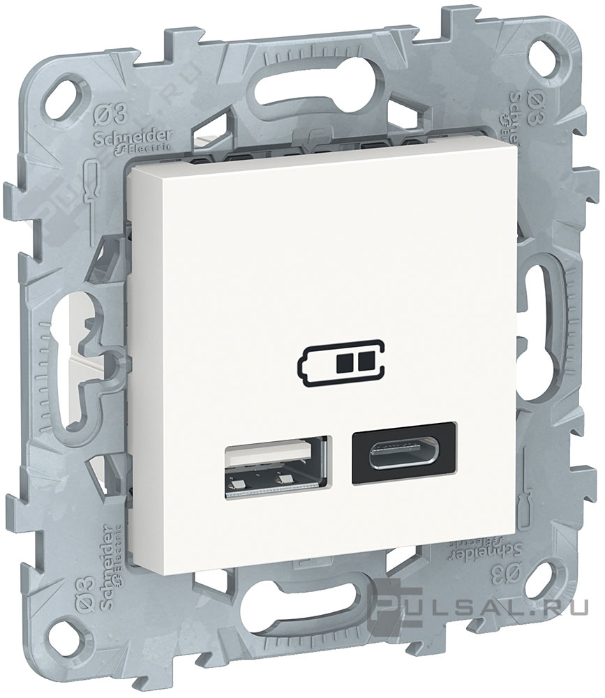 Unica New Pure, Unica New Studio, USB type-A 5V, двойная, цвет - белый