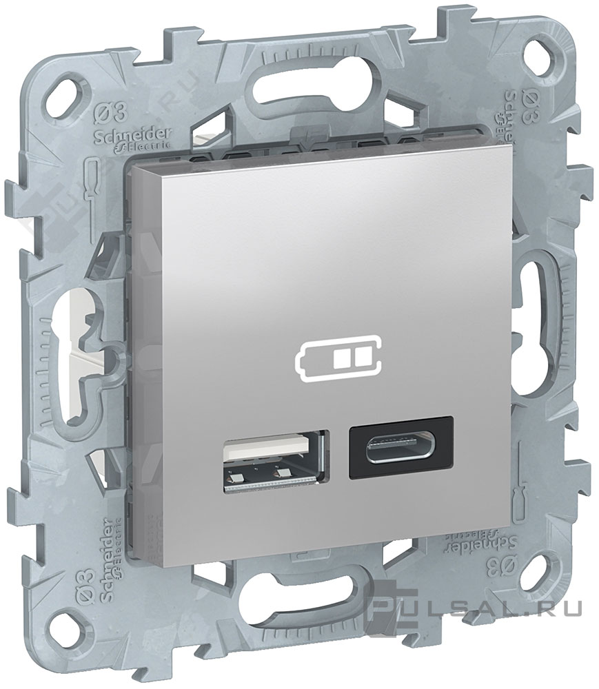 Unica New Pure, Unica New Studio, без шторок, с заземлением, одинарная, безвинтовые клеммы, цвет - алюминий