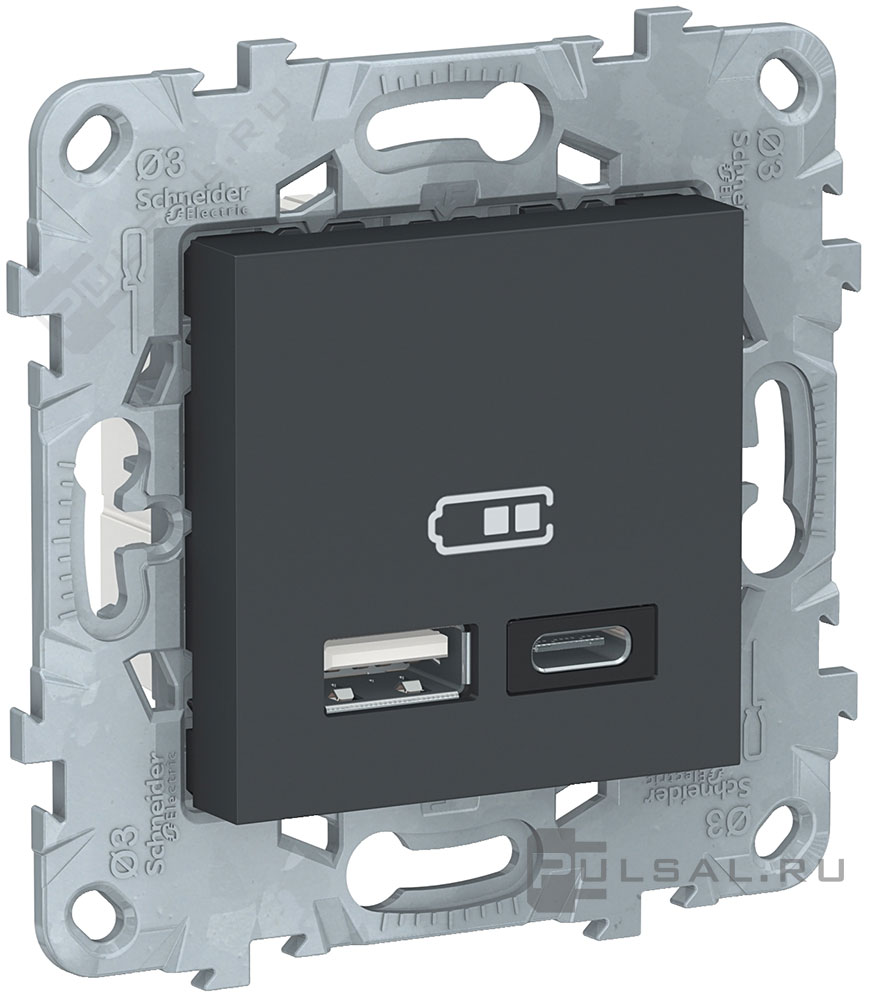 Unica New Pure, Unica New Studio, без шторок, с заземлением, одинарная, безвинтовые клеммы, цвет - антрацит