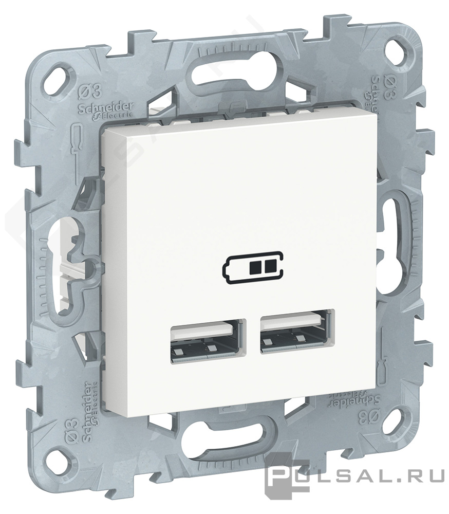 Unica New Pure, Unica New Studio, без шторок, с заземлением, одинарная, безвинтовые клеммы, цвет - белый