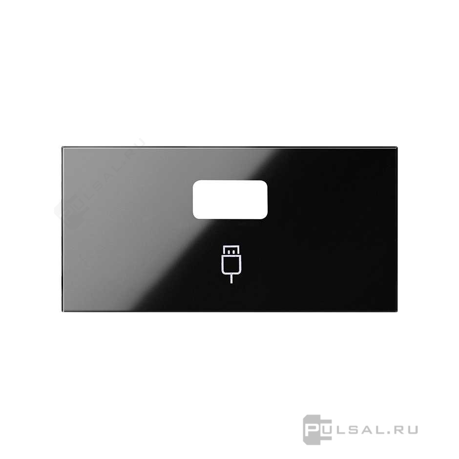 Накладка для розетки USB Simon 100, USB данные, одинарная, цвет - черный глянец