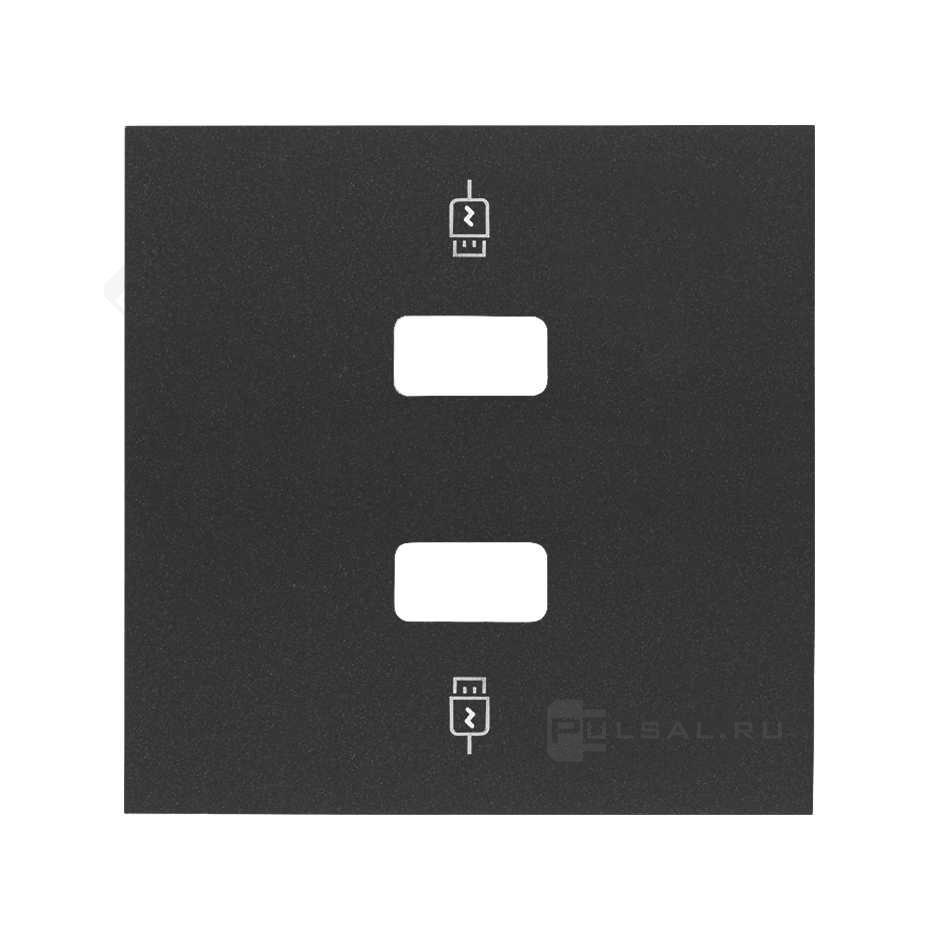 • Кит 2 поста, фронт. Накладка на 2 розетки Schuko с з/у USB SC цвета черный матовый S100