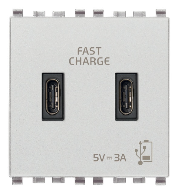 Зарядка USB type-C+C, 3А с быстрой зарядкой Eikon EVO, Eikon EXE, USB type-C 5V, двойная, цвет - серый Next