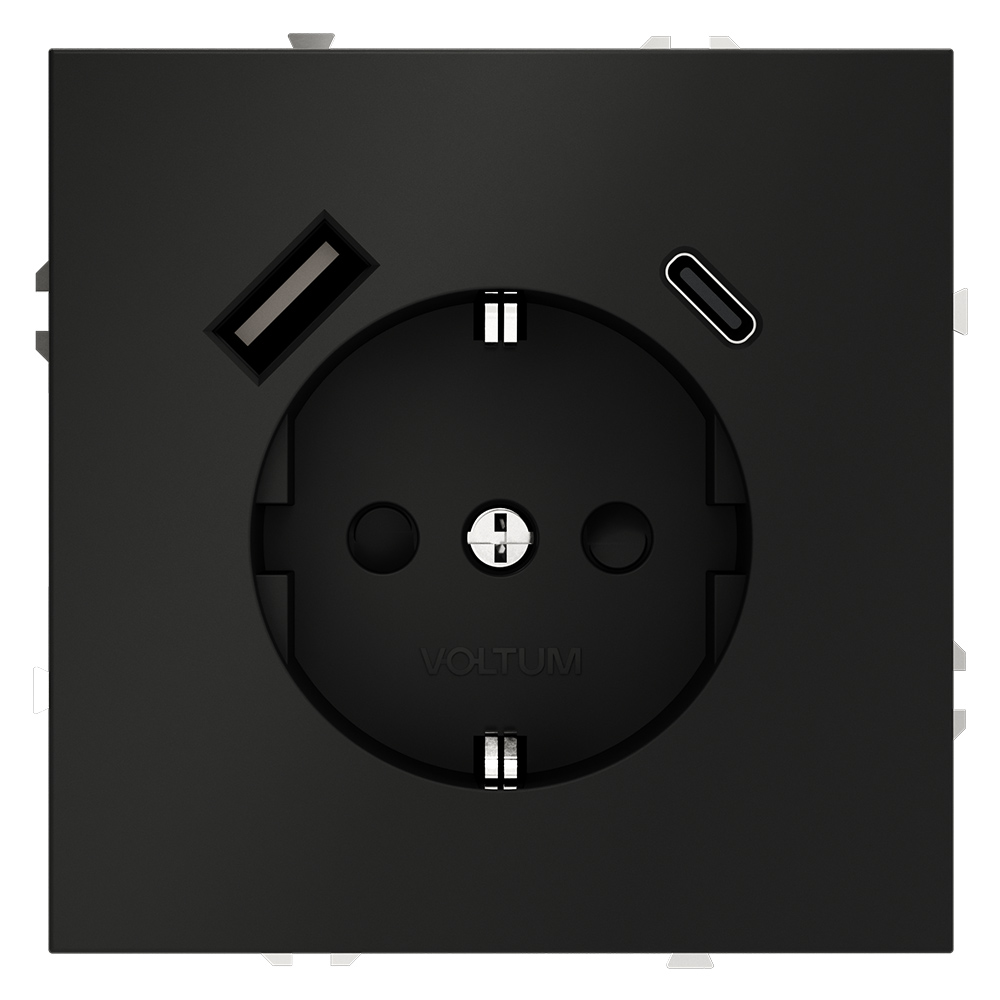 S70, USB type-A 5V, Электр. с USB, двойная, цвет - черный матовый