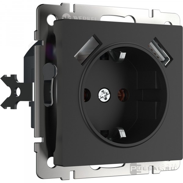 Розетка USB A+A, 2.1А с электрической розеткой Alumax, Split, Slab, Senso, Baguette, Acrylic, Platinum, Elite, Snabb, Stream, Flock, Stark, Fiore, Favorit, Diamant, Aluminium, Antik, Metallic, USB type-A 5V, Электр. с USB, двойная, цвет - черный