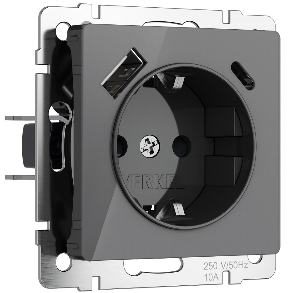 Alumax, Split, Slab, Senso, Baguette, Acrylic, Platinum, Elite, Snabb, Stream, Flock, Stark, Fiore, Favorit, Diamant, Aluminium, Antik, Metallic, USB type-A 5V, двойная, цвет - графит акрил
