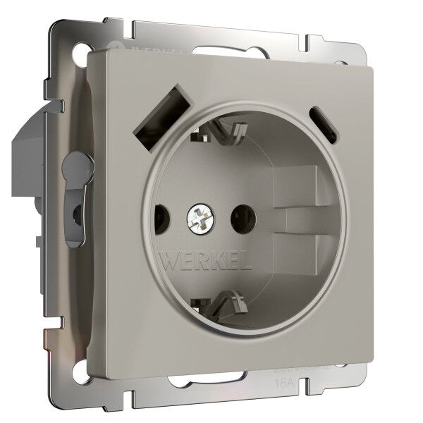 Розетка Elite, Platinum, Acrylic, Baguette, Senso, Slab, Split, Alumax, Favorit, Aluminium, Antik, Metallic, со шторками, с заземлением, одинарная, винтовые клеммы, цвет - дымчатый